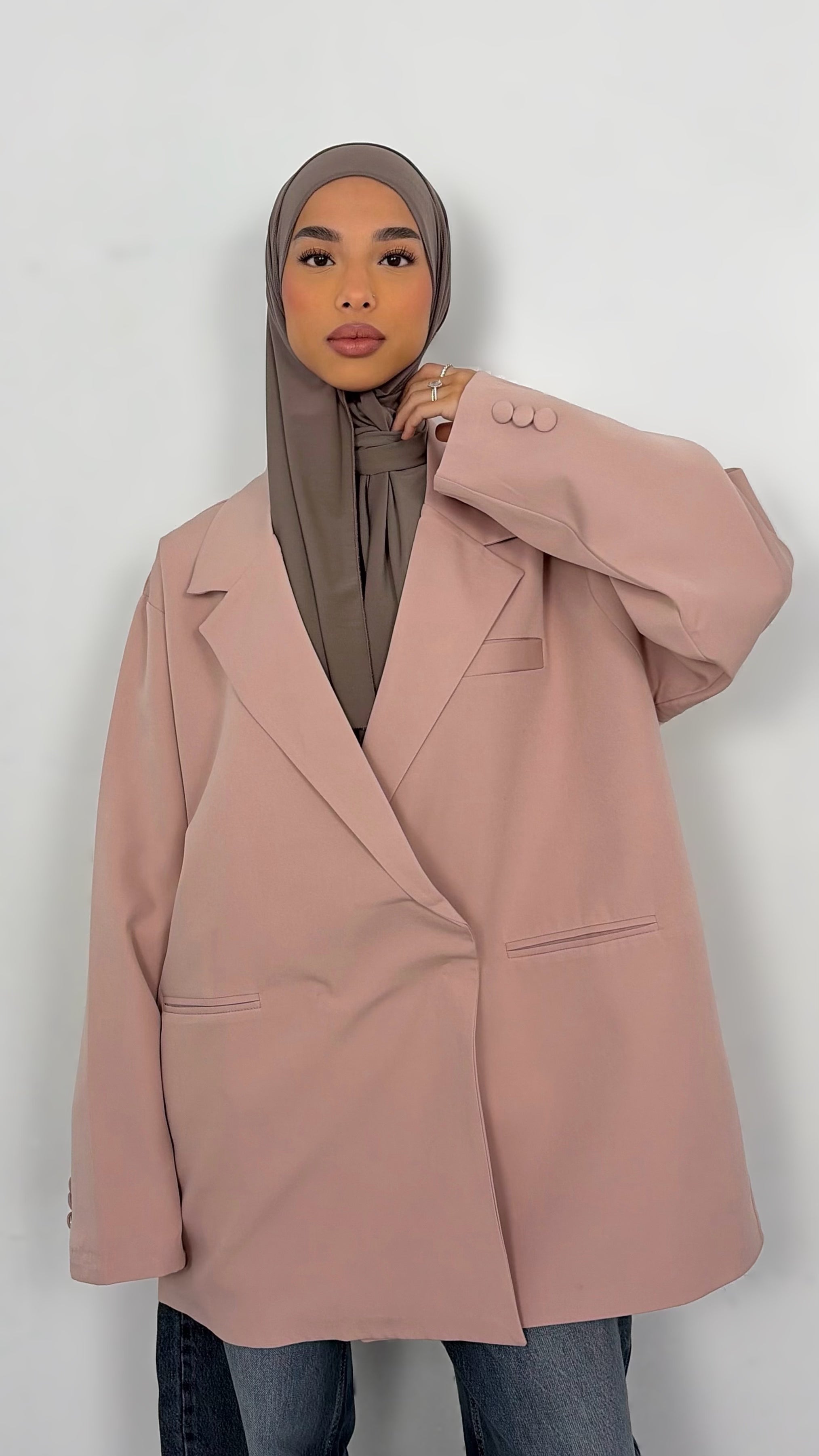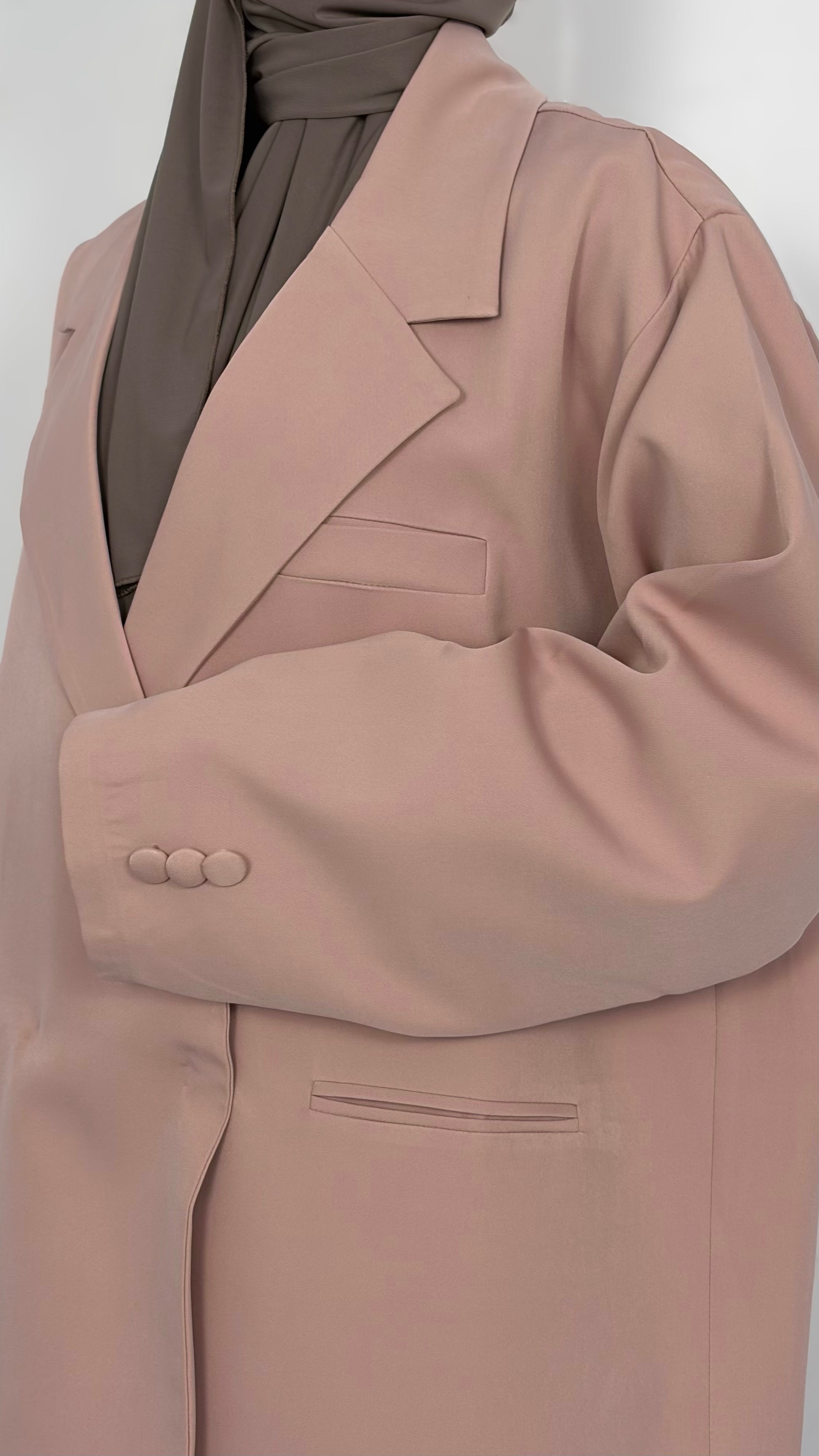 Découvrez notre blazer croisé surdimensionné, une pièce intemporelle à la coupe fluide et oversize. Conçu sans épaulettes, il s’adapte naturellement à votre silhouette pour une allure à la fois structurée et décontractée. À l’arrière, le détail de la fausse poche et l’étiquette signature Maison Khiêm apportent notre touche personnelle.