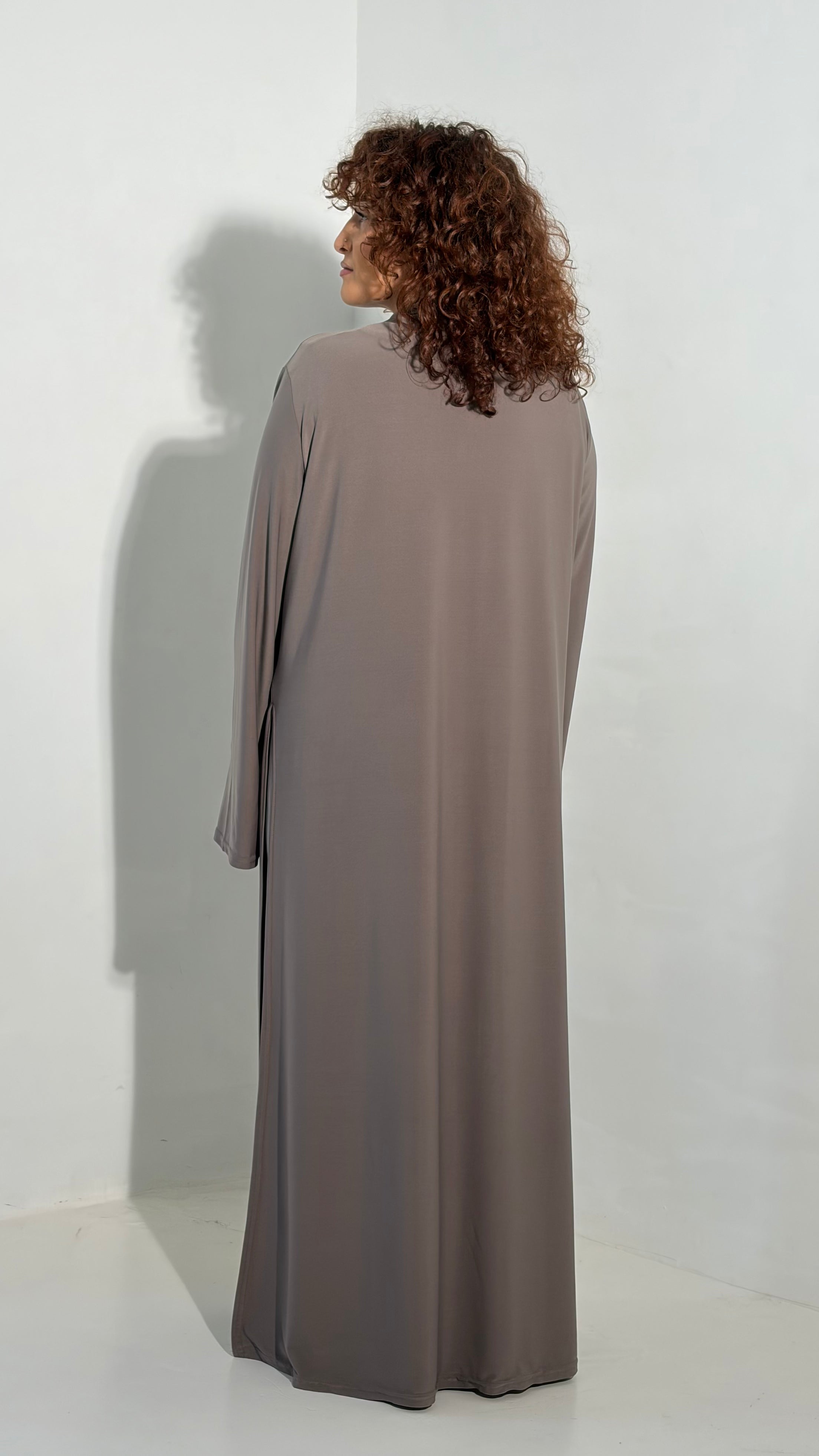 Découvrez l’élégance intemporelle de cet ensemble. Conçu pour allier confort et raffinement, il se distingue par son col montant. Ses fentes de chaque côté assurent une liberté de mouvement. Pour un porté harmonieux, l’ensemble est complété par une sous-robe incluse, garantissant une tenue élégante en toute occasion.
