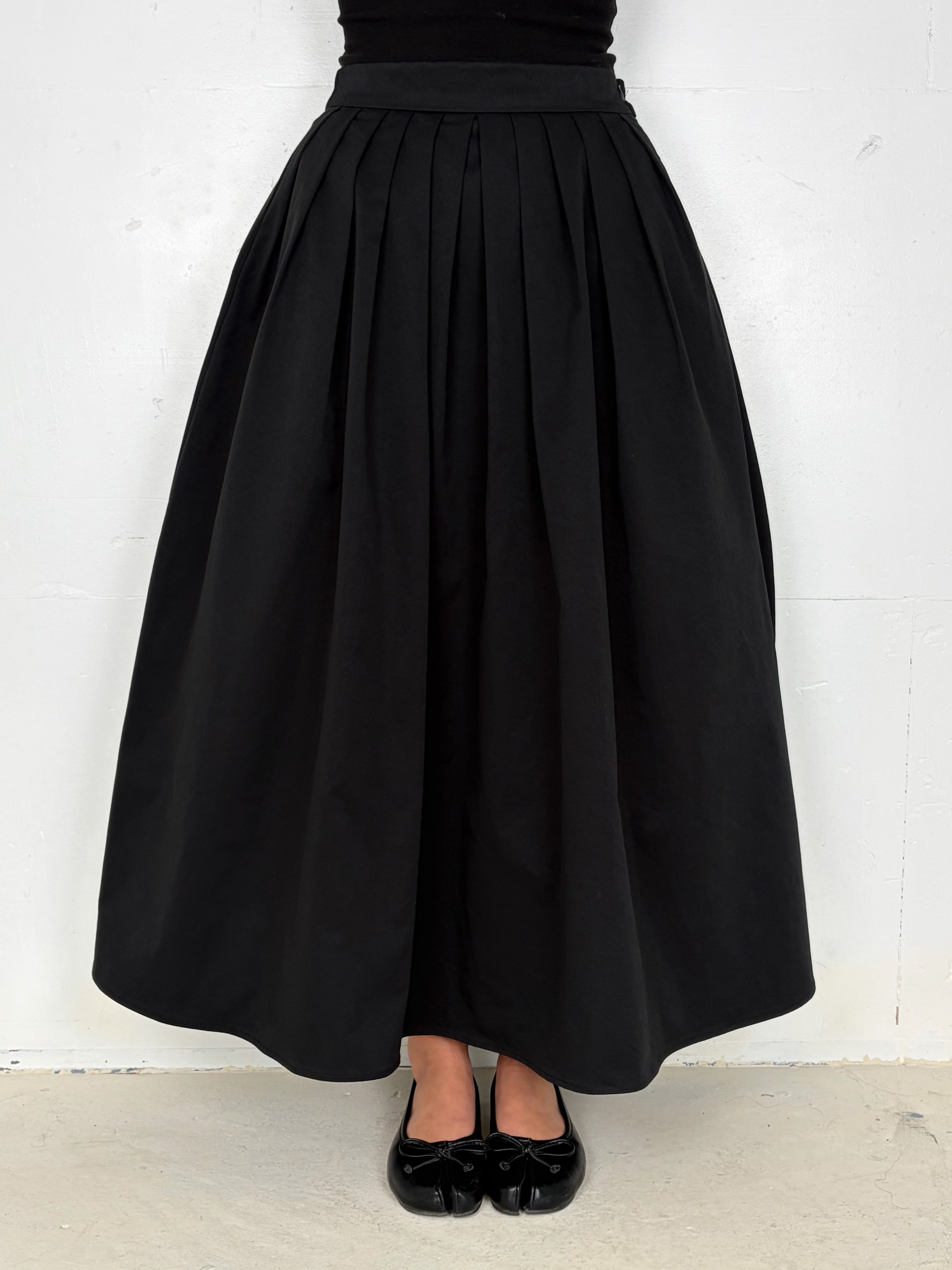 The skirt has an elastic waistband and a side closure to make it easier for you to try on.