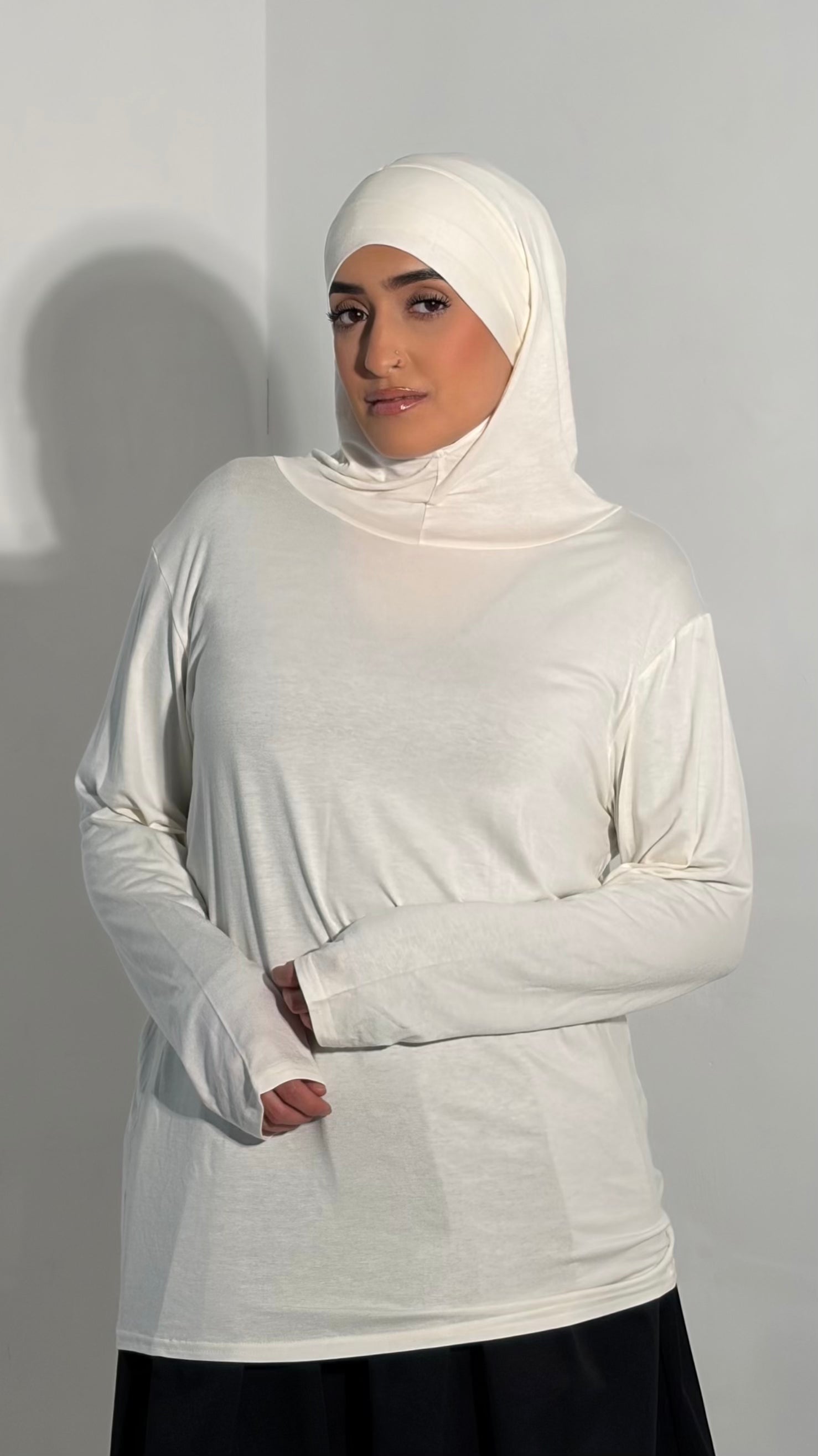 Sous-pull à cagoule intégrée manches longues blanc