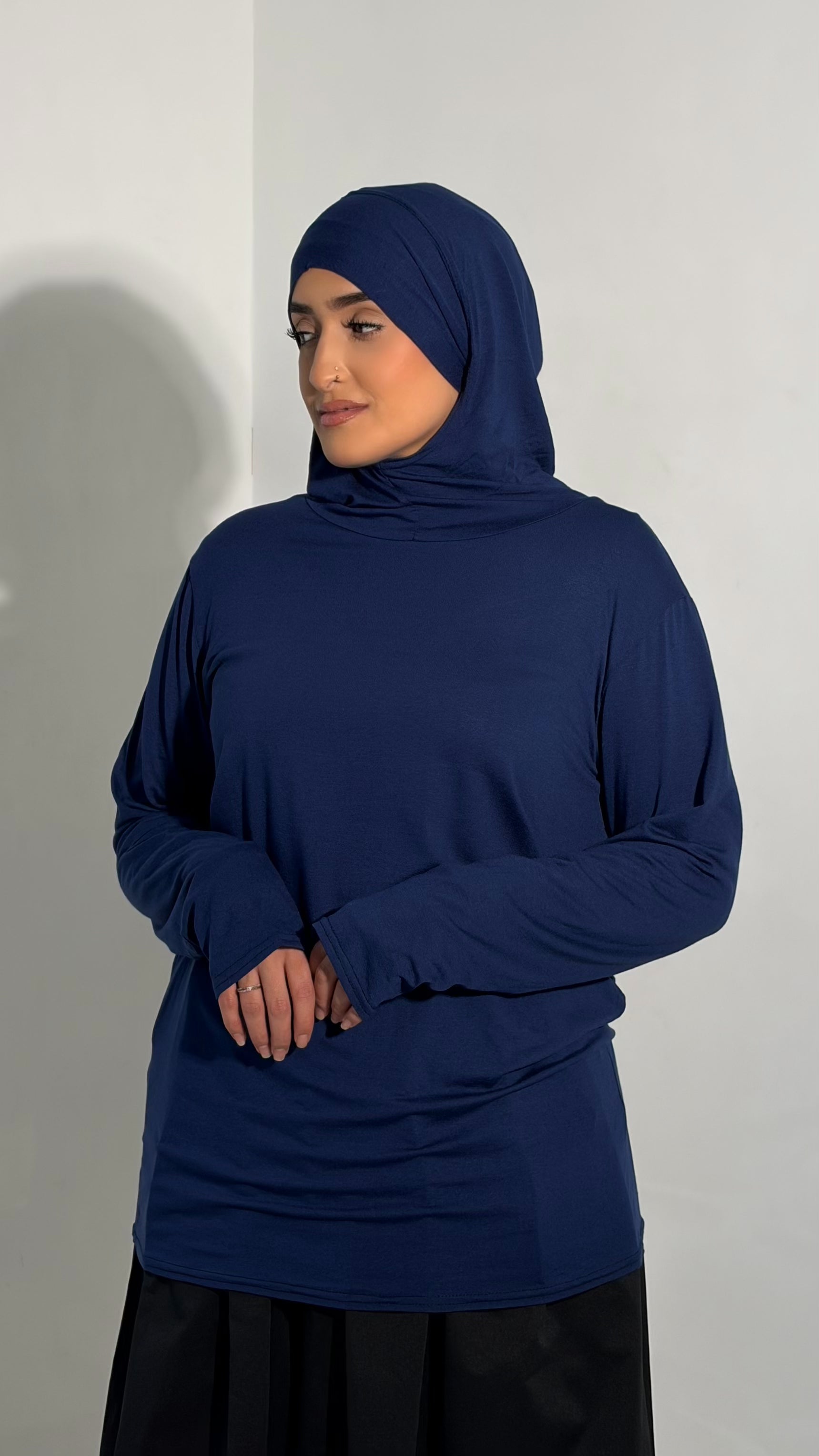 Sous-pull à cagoule intégrée manches longues bleu marine