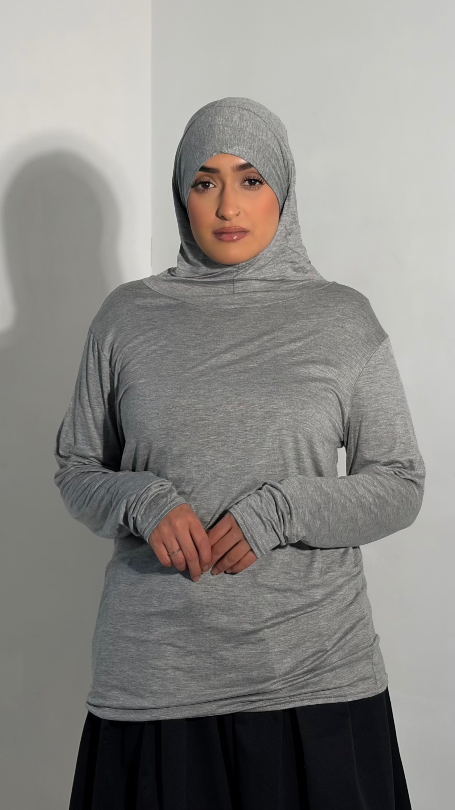 Sous-pull à cagoule intégrée manches longues gris chiné