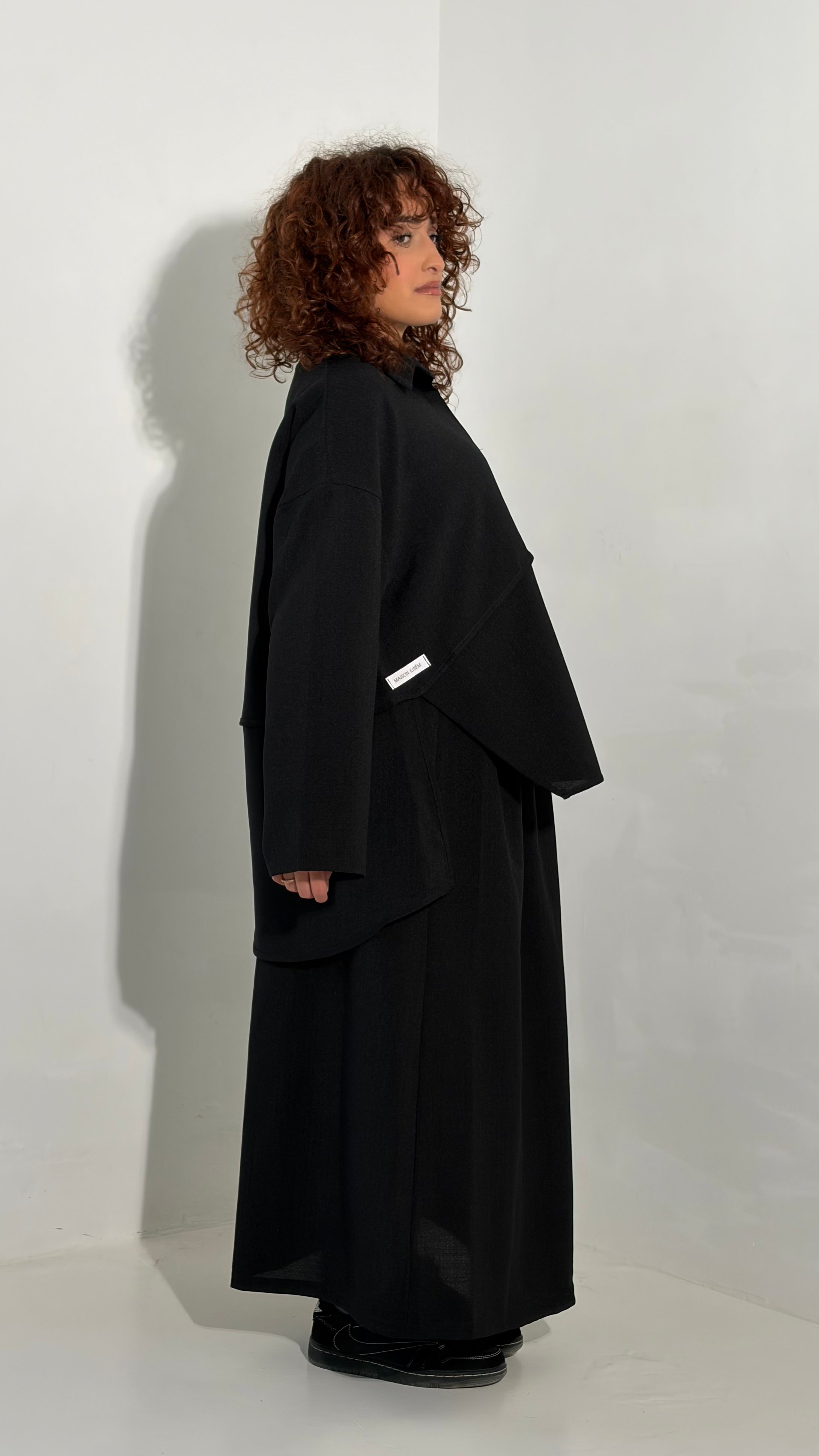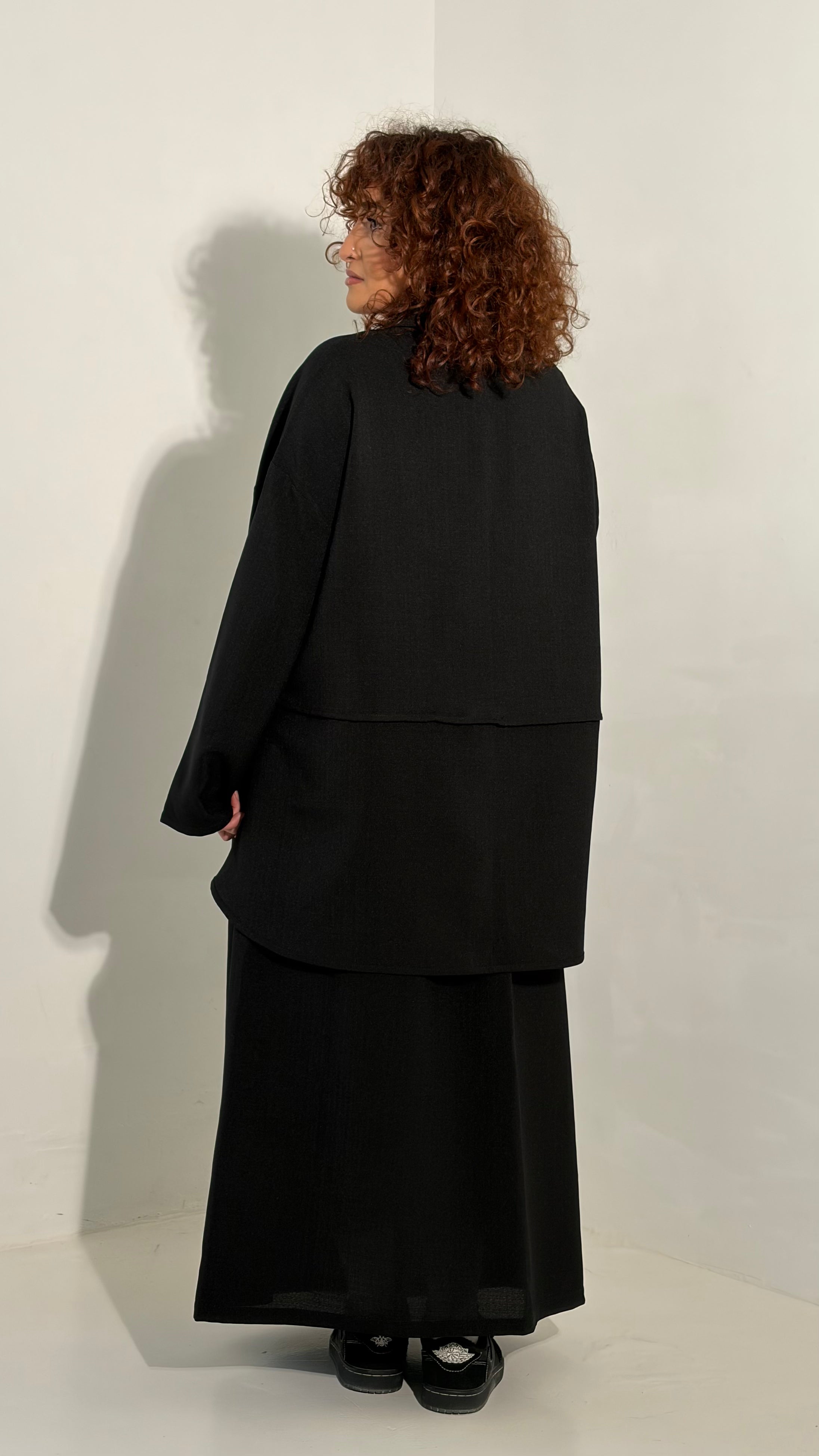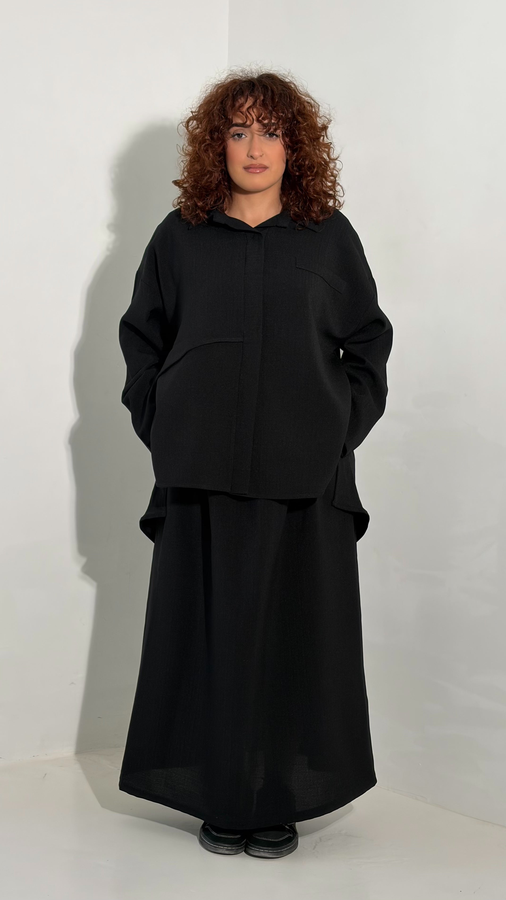 Ensemble effet lin jupe & chemise noir